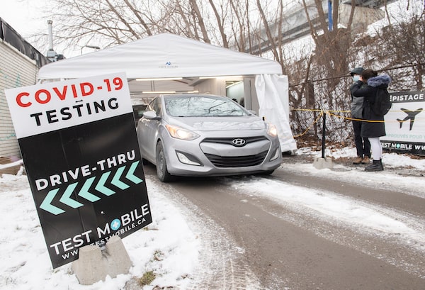 A COVID-19 drive-thru testing site in Montreal on Dec. 22.Graham Hughes/The Canadian Press