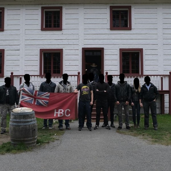 In early 2018, among the final alt-right chats obtained by The Globe, the young man shared a picture with his fellow fascists. In it, 10 young men and one woman pose in front of a large, white house. He himself stands in the middle, holding a company flag which is similar in design to the red ensign. The red ensign was Canada’s flag until 1965 and for many on the far right, a symbol of a time when the country’s population was whiter than it is now.