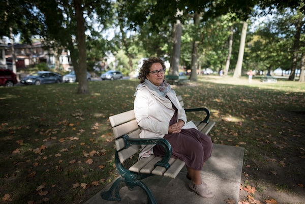 Valerie Rhodes sits on a bench commemorating the life of her son, Ryan Hicks, who she lost to an overdose along the Beaches boardwalk in Toronto on Sept. 25, 2019.Tijana Martin/The Globe and Mail