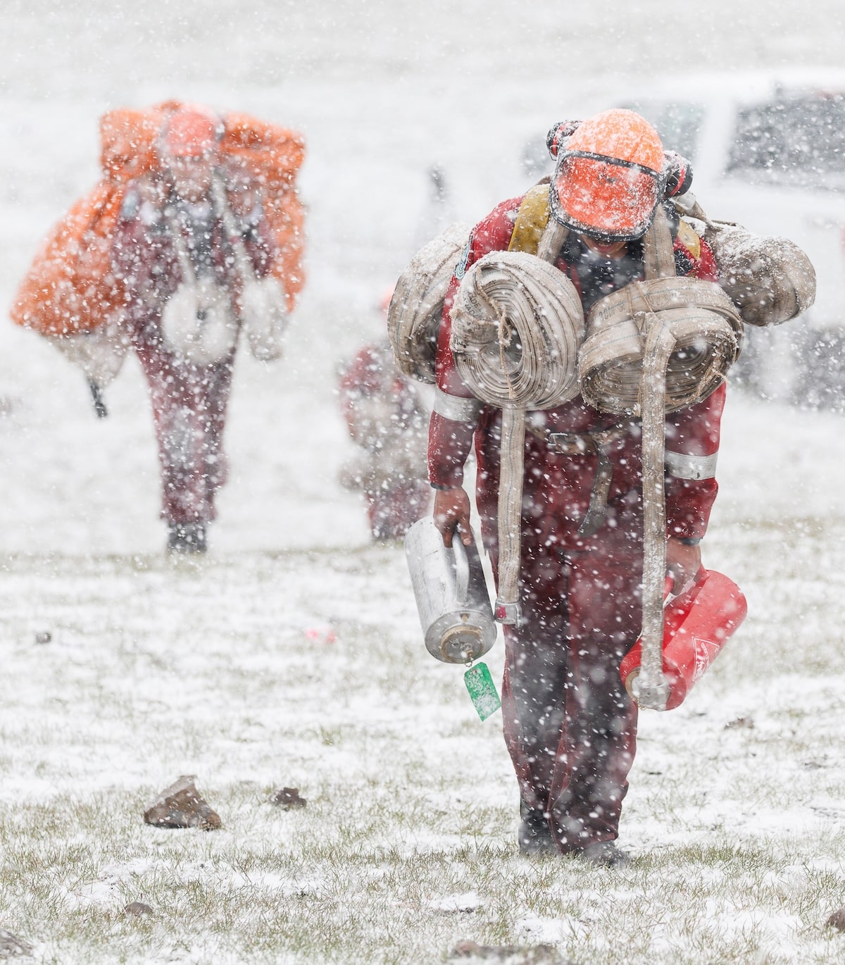 Depending on their role, a wildland firefighter might carry 50 pounds of gear, including large volumes of drinking water, a hose, a chainsaw and a jerry can of fuel. So, for starters, it must be sufficiently light and compact to stow in a pack.