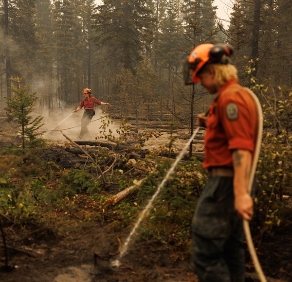 Hose duty is one of a firefighter’s less exerting tasks – the ideal setting to use a respirator, says Drew Lichty, who advises the B.C. Wildfire Service on smoke safety.Jesse Winter/The Globe and Mail