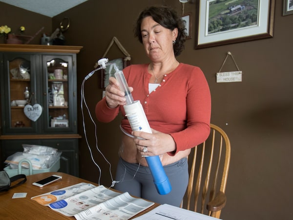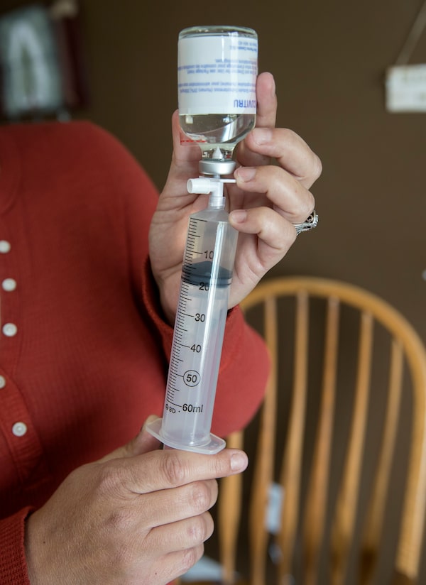Christina Hickey prepares her immune globulin drug at her home near Peterborough, Ont.FRED THORNHILL