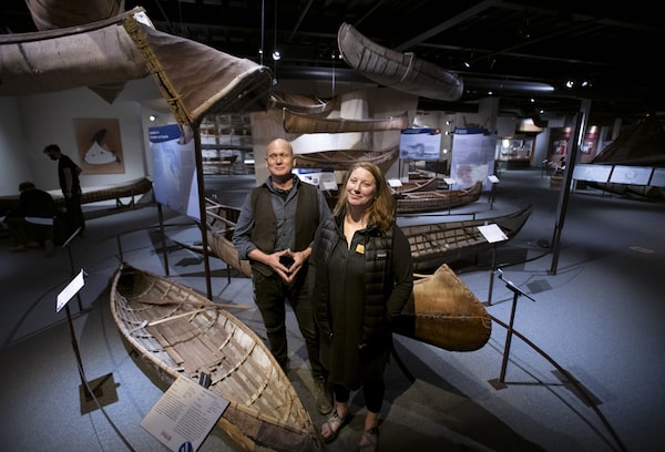 Canadian Canoe Museum curator Jeremy Ward, left, and executive director Carolyn Hyslop with birchbark canoes in the museum's collection. The museum in Peterborough, Ont., is moving to another location in the city that will be on the water.Fred Lum/The Globe and Mail