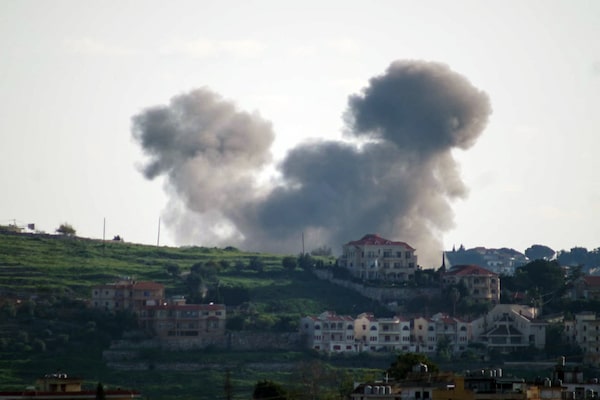 Smoke rises from the site of an Israeli airstrike that targeted the southern Lebanese village of Choukine on Monday.ABBAS FAKIH/AFP/Getty Images