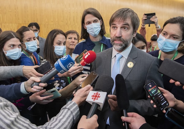 Steven Guilbeault, Minister of Environment and Climate Change of Canada speaks to reporters at the COP15UN Biodiversity Conference in Montreal on December 18, 2022.Graham Hughes/The Canadian Press