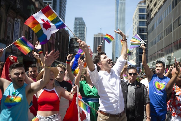 Prime Minister Justin Trudeau walks in Toronto's Pride parade, on June 23, 2019. The parade is one of many notable events cancelled this summer due to COVID-19 restrictions.Chris Young/The Canadian Press