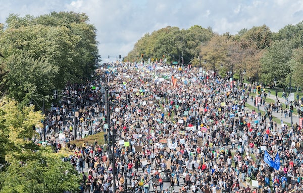 In Montreal, Indigenous teenagers and Ms. Thunberg arrived about 20 minutes before the last stragglers left the starting point of the city’s walk. Marchers spilled into side streets along the planned route, taking over much of the downtown. The 4.4-kilometre continuous stream of humanity defied precise counting, but the city’s emergency services estimated 315,000 people were there.