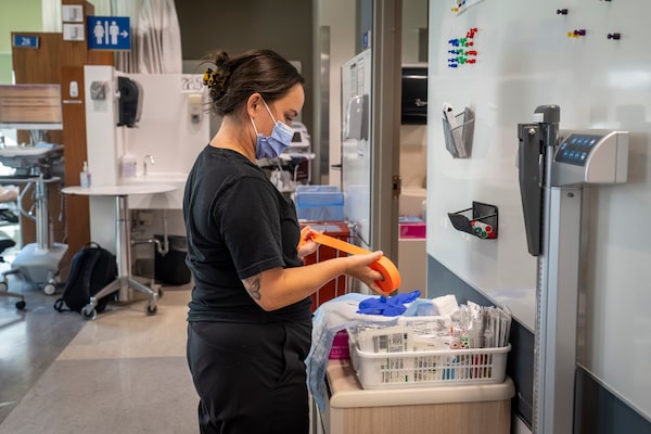 Chemotherapy daycare nurse Karly Sidak prepares for a session at the Princess Margaret Cancer Centre in Toronto. Myeloma patients have started a campaign to call on politicians to restart pricing talks for Carvykti, a type of CAR-T therapy.EDUARDO LIMA/The Globe and Mail