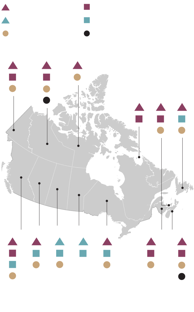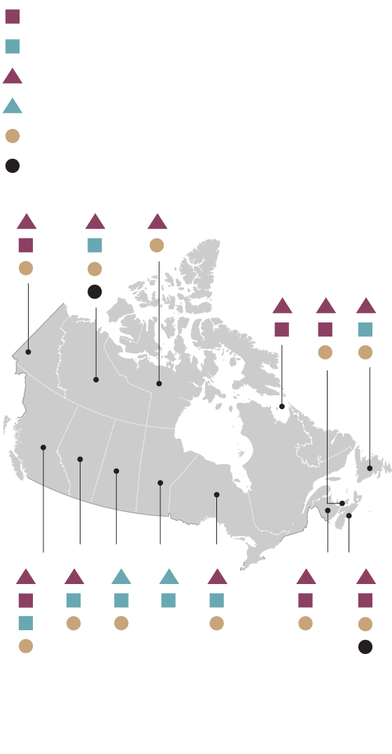 Province by province • Alberta • British Columbia • Manitoba • New Brunswick • Newfoundland and Labrador • Northwest Territories• Nova Scotia • Nunavut • Ontario • Prince Edward Island • Quebec • Saskatchewan • Yukon