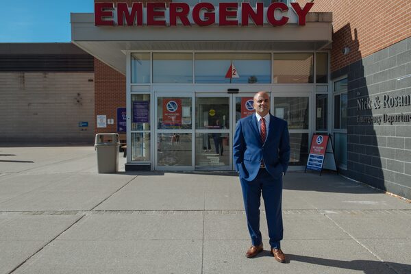 Altaf Stationwala, CEO of Mackenzie Health hospital in Richmond Hill, Ont., stands outside the hospital's emergency department, on June 8, 2020. 'People are starting to come back to the hospital,' he says, 'but the patients who are coming are pretty sick. So our admission rates have gone up.'Galit Rodan/The Globe and Mail