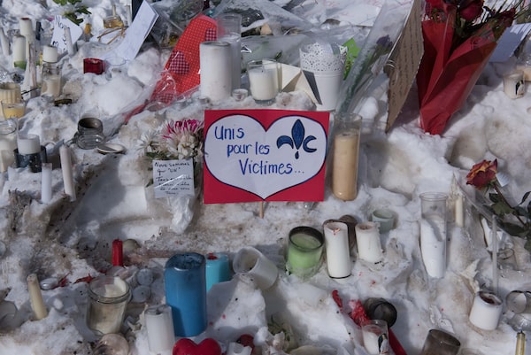 A makeshift memorial for victims of a shooting at a Quebec City mosque, on Jan. 31, 2017.ALICE CHICHE/AFP