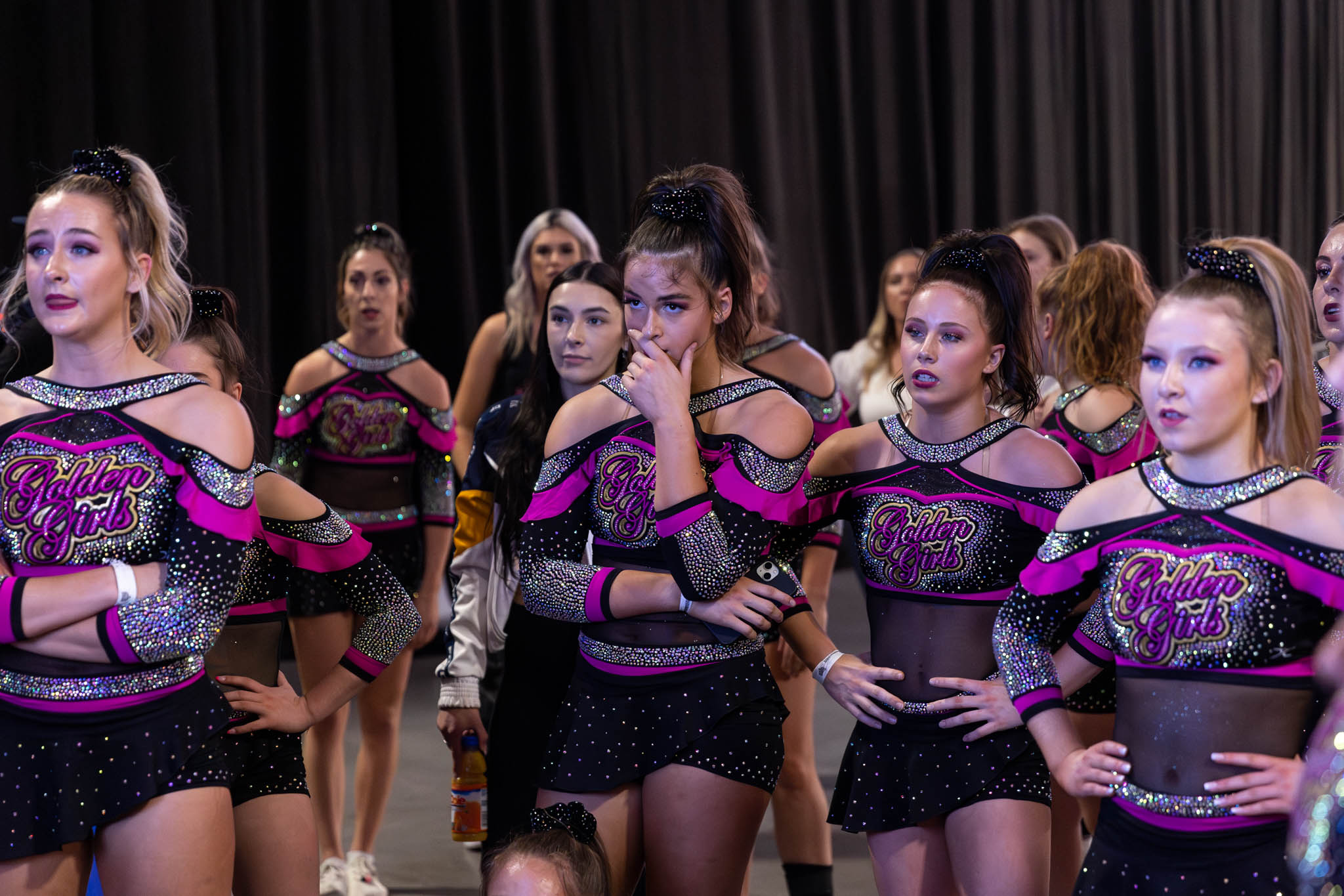 The Golden Girls gathered in the dark backstage, finding a moment of calm amid the thunderous noise. Their coach, Jess Montoya, had taught them to focus inward and fuel their minds with positive thoughts in those moments, replaying every practice, every competition, every time their routine had gone right.