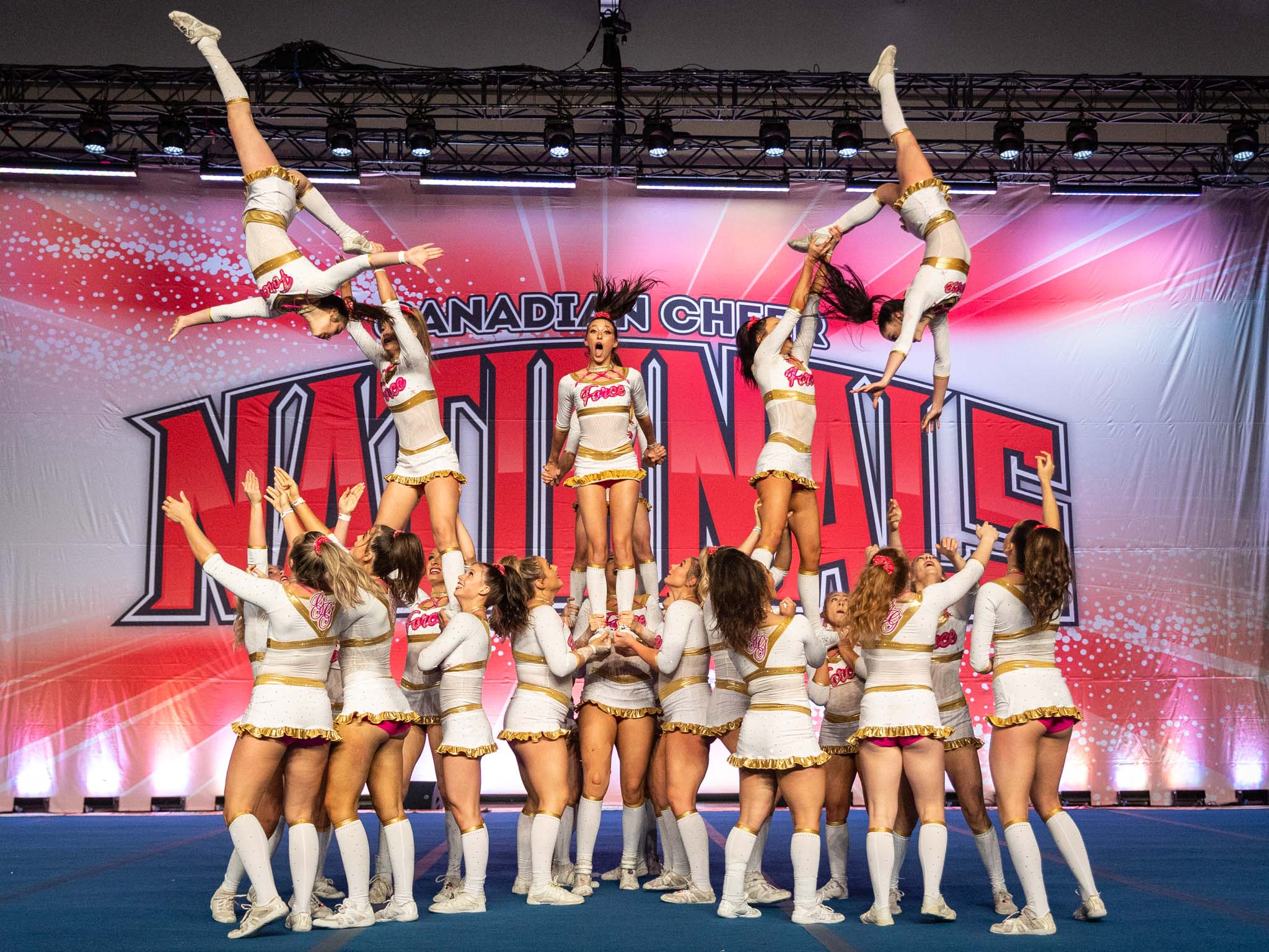 The CheerForce WolfPack Golden Girls and the Cheer Sport Great White Sharks are two of the most prominent and closely watched teams in the rapidly developing world of Canadian cheer. Going into Nationals in April, the Great White Sharks were five-time world champions and the subject of Canadian reality show Cheer Squad, a team known for precise and beautiful routines, for stunts that pushed the limits of what seemed possible.