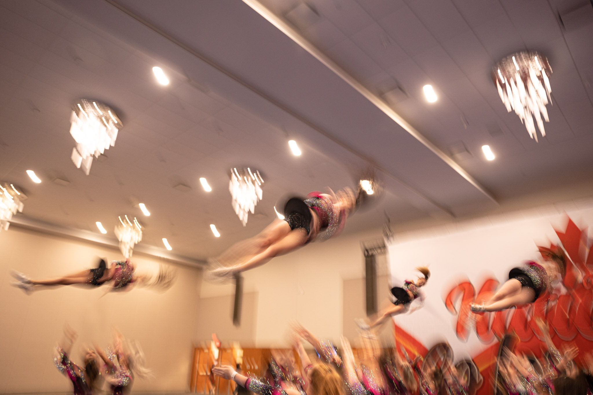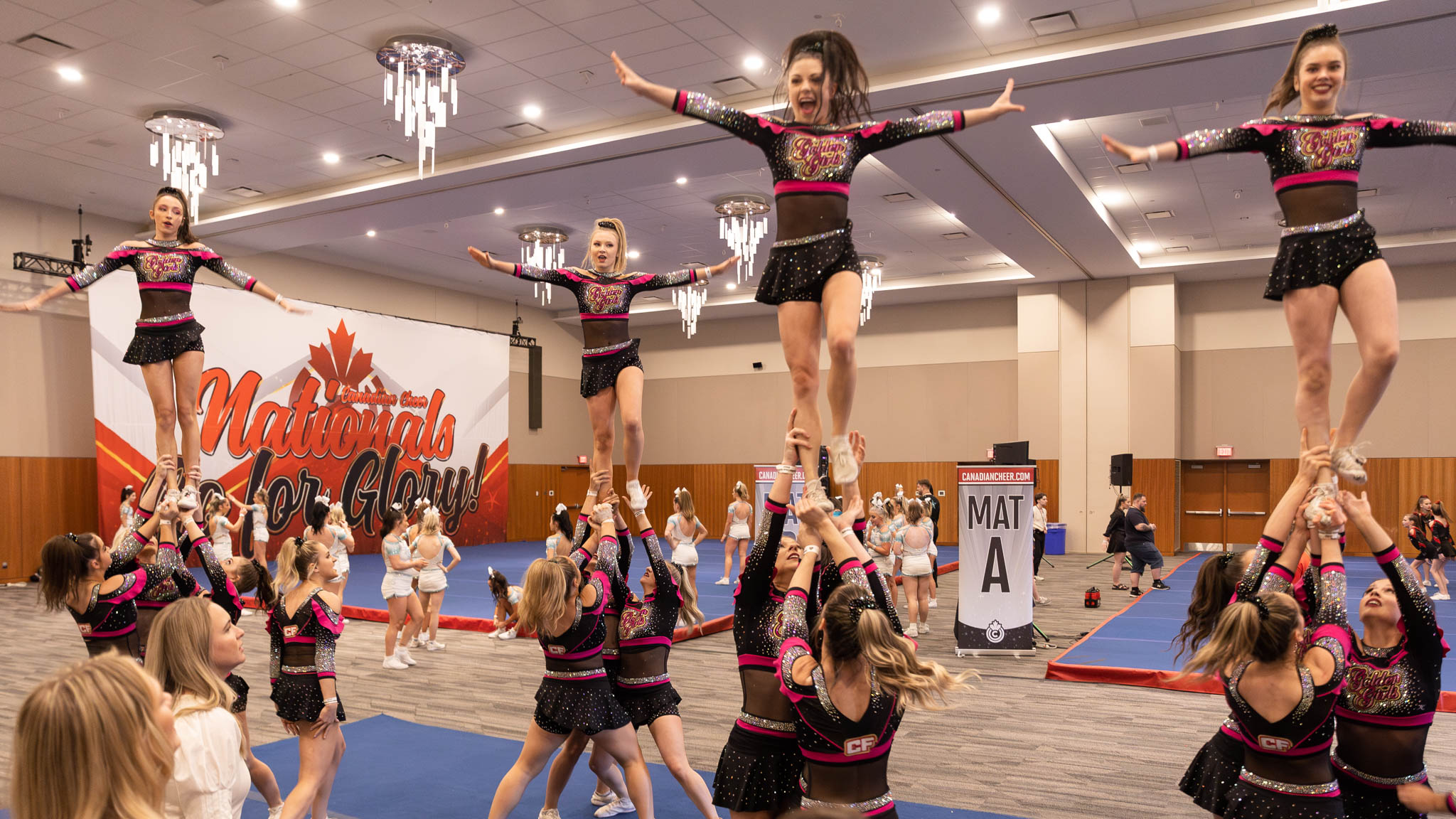 The GGs, as they called themselves, had done their warm-ups and gone through their rituals. They’d screamed together in the foyer of the Niagara Falls Convention Centre, shouting out the doubt and negativity, anything that could hold them back. They’d run their routine, working their pyramids and tumbling and baskets and dance over and over – and in their minds so many more times than that – until its relentless rhythm was as natural as breathing. They’d stretched into splits, lifted their legs into standing scales, flipped and tumbled down the practice mats. They’d stood swaying together in a circle, two dozen teenagers and women with their arms wrapped around each other, singing Lady Gaga at the top of their lungs.