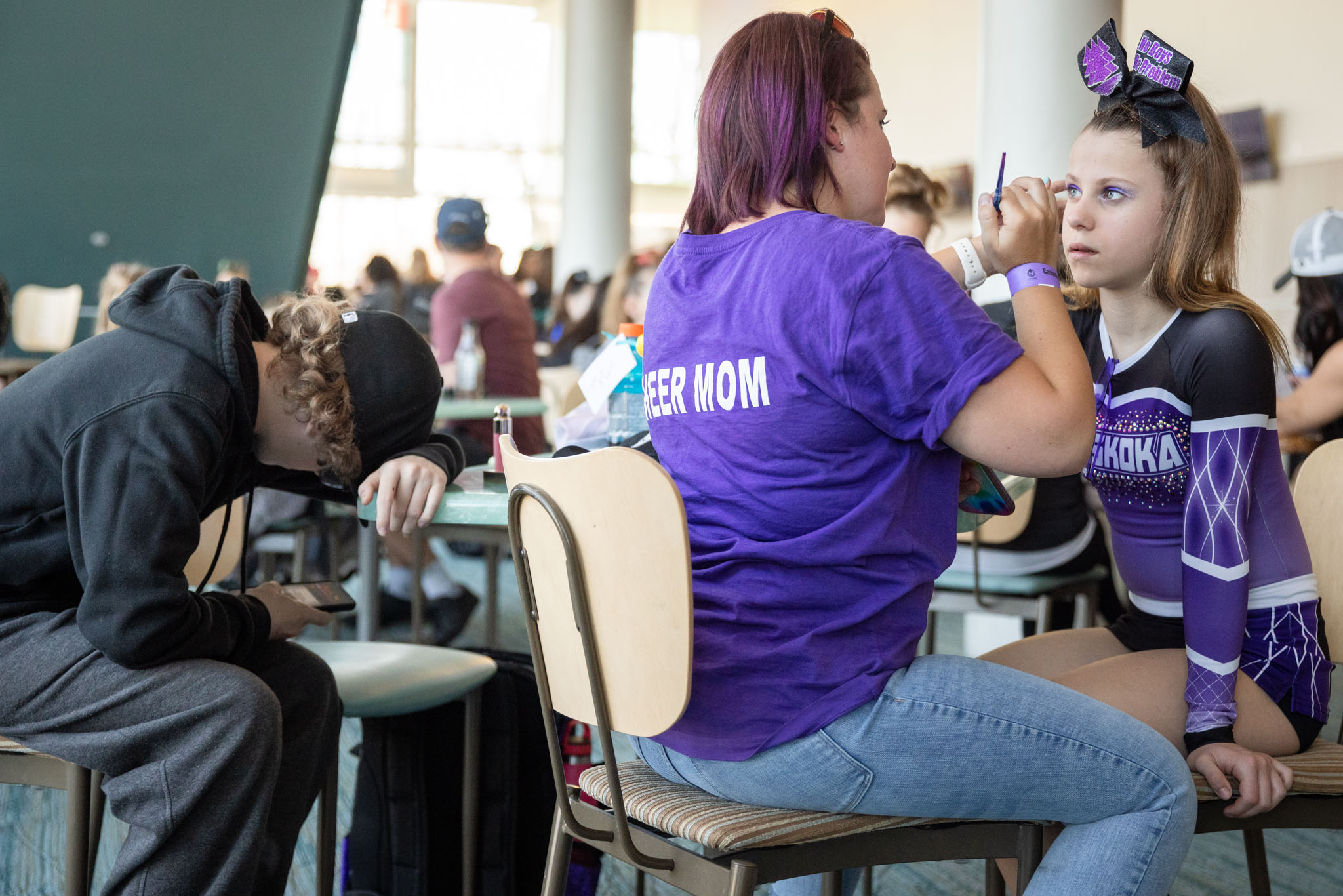 “It’s hard to keep smiling, but you have to. You have to tough it out,” Alyssa said brightly. She was in her fifth year of cheer, competing with the Cheer Sport Spinner Sharks. “Even if you get kicked in the face by a girl, you have to keep smiling.”