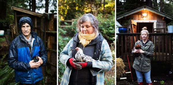 Verne Bruhwiler, Leah Austin and Sarah Platenius are three Tofino-area residents who raise chickens. For Mr. Bruhwiler, the birds are a connection to his native Switzerland, where his uncle kept chickens on a farm; for Ms. Austin, they're a topic of discussion at 'chicken socials'; and for Ms. Platenius, they're a part of her home: 'Just like growing parsley in the garden, they're another element of growth.'Photography by Melissa Renwick/The Globe and Mail