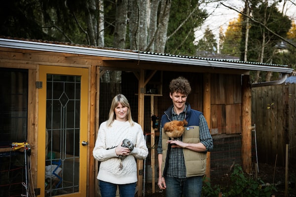 Lauren Howard-Tripp and Colin Robinson are an Ucluelet couple who learned to raise chickens in a coop that came with their house. 'They’re basically like pets,' he says.
