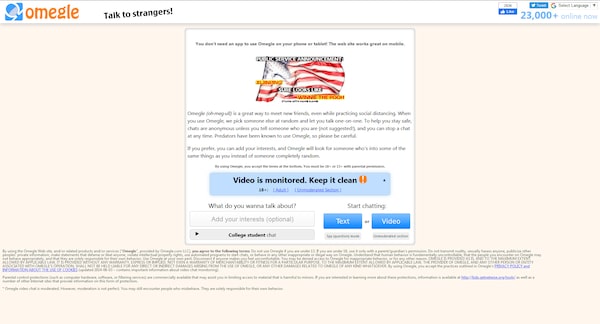 Predators can reach children on well-known apps like TikTok and Instagram, as well as gaming interfaces like Roblox and Discord and websites like Omegle, pictured here.