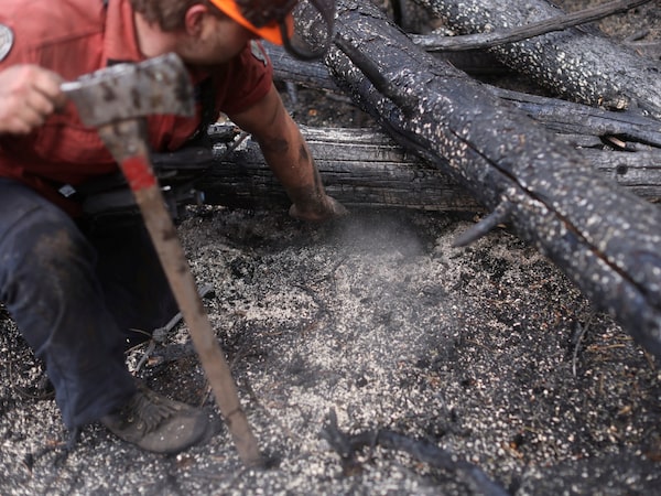 A BC Wildfire Service crew douses a hotspot and 'cold trails' to make sure it will not flare up again. An early, thorough response is critical to stopping fires before they spread.Jesse Winter/Reuters