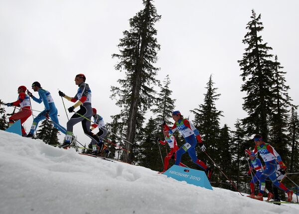 Competitors take part in the Cross Country Skiing Men's 50 km Mass Start Classic during the 2010 Olympic Games at the Whistler Olympic Park, Whistler, Canada.Andrew Milligan/Reuters