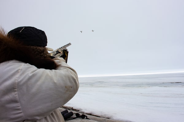 Mr. Elias, who grew up near the birds’ nesting grounds on Banks Island, hardly ever misses a shot. The young father is descended from a distinguished line of hunters. While still a teenager, he killed the polar bear that now towers over the lobby of Yellowknife’s Explorer Hotel.