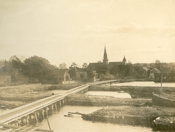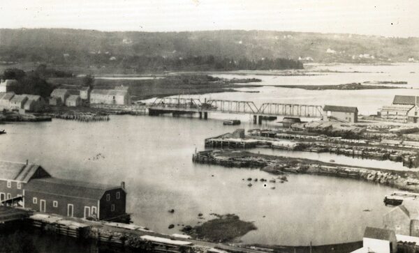This archival photo was taken circa 1900, from the Baptist church bell tower looking across the Liverpool parking lot towards the town bridge.Queens County Museum/Supplied