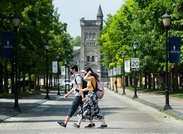 People walk past the University of Toronto campus during the COVID-19 pandemic in Toronto on June 10, 2020.Nathan Denette/The Canadian Press