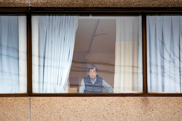 A person looks out of a window at the Tendercare Living Centre, a long-term seniors care facility which is the site of a COVID-19 outbreak, in Scarborough, Ontario, Dec. 28, 2020.CARLOS OSORIO/Reuters