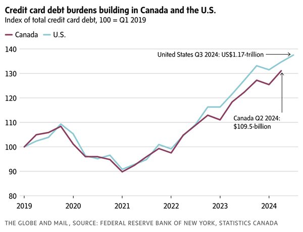 A surge in credit-card debt is just one sign of financial pain among households.The Globe and Mail