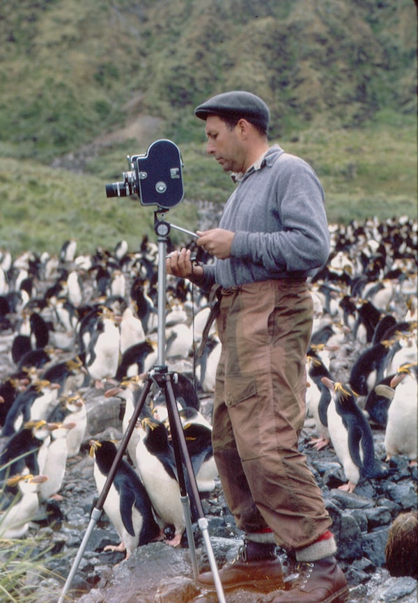 Bruce Falls is surrounded by penguins while visiting Macquarrie Island in 1964 when he was on sabbatical to Australia.Ann Falls