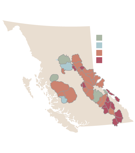 Act since 2003. Over roughly 30 years, the population of southern mountain caribou in B.C. and Alberta