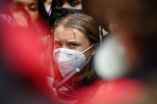 Environmental activist Greta Thunberg joins a protest outside the Standard Chartered financial headquarters in London on Oct. 29.Leon Neal/Getty Images