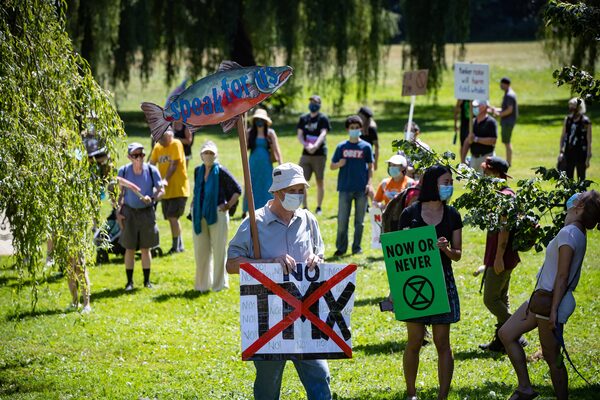 Anti-pipeline protesters rally in New Westminster, B.C., in 2020 to oppose the Trans Mountain pipeline expansion.Darryl Dyck/The Canadian Press