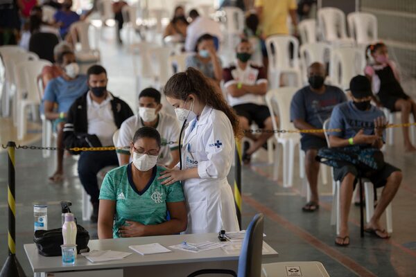 A patient gets medical treatment at the Health Care Center specialized in Flu and COVID-19 at the Complexo do Alemao Olympic Village, located in Complexo do Alemao favela in Rio de Janeiro, Brazil, today.MAURO PIMENTEL/AFP/Getty Images