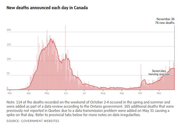 Sources: Canada data are compiled from government websites, Johns Hopkins University and COVID-19 Canada Open Data Working Group; international data are from Johns Hopkins.