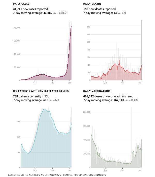Sources: Canada data is compiled from government websites, Johns Hopkins and COVID-19 Canada Open Data Working Group; international data is from Johns Hopkins University.