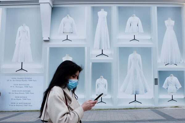 A woman wearing a protective face mask walks on the Champs Elysees Avenue in Paris amid the coronavirus disease outbreak in France, today.GONZALO FUENTES/Reuters
