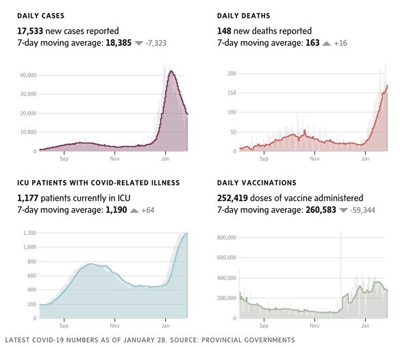 Sources: Canada data is compiled from government websites, Johns Hopkins and COVID-19 Canada Open Data Working Group; international data is from Johns Hopkins University.