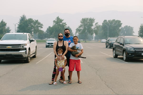 Violet Lux, who left her home in Lytton, B.C., is seen with her family in the parking lot of an evacuation centre in Kamloops.Jackie Dives/The Globe and Mail