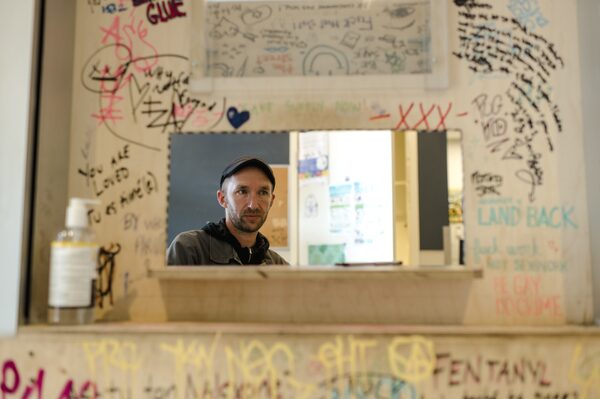 Jean-Francois Mary, the executive director of Cactus, stands by the dispensing window at Cactus' Safe Injection Site, in Montreal, on April 29, 2021.Andrej Ivanov/The Globe and Mail