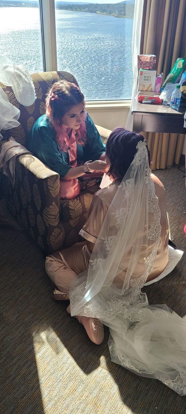Ms. Murphy, right, gets her makeup done by Carla Jabalee ahead of her wedding.Samantha Murphy/Supplied