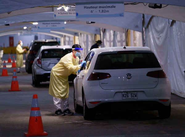 A nurse performs a test at a drive-in COVID-19 clinic, in Montreal, on Oct. 21, 2020.Paul Chiasson/The Canadian Press