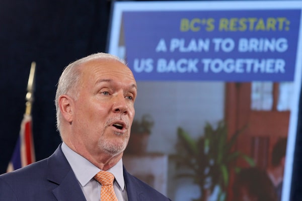 B.C. Premier John Horgan will hold a news conference later today to announce the next steps in B.C.’s plan to safely restart the province.CHAD HIPOLITO/The Canadian Press