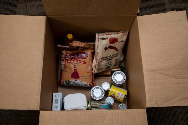 Boxes of groceries, containing such items as as cassava flour and dried fish for traditional meals.Amber Bracken/The Globe and Mail