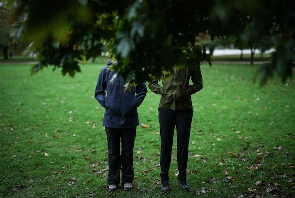 Two Canadian Security Intelligence Service surveillance officers pose for a photograph in Vancouver on Oct, 18, 2023.DARRYL DYCK/The Canadian Press
