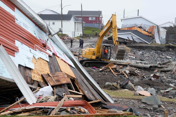 A heavy machinery operator cleans up from post-tropical storm Fiona in Port aux Basques, N.L., on Sept. 29, 2022.Frank Gunn/The Canadian Press