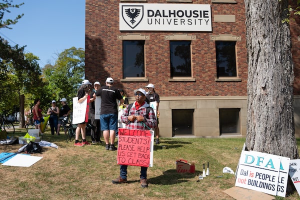 Members of the Dalhousie Faculty Association walk a picket line in Halifax on Tuesday.Darren Calabrese/The Canadian Press