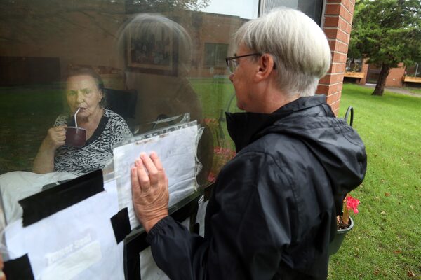 Since March 16, Susan Mills has had a daily ritual: Every morning, she’d stand outside The Grove nursing home in Arnprior, Ont., with her face pressed up to the glass of her mother’s ground-floor window. Next to her was a paper sign, taped to the pane with the text facing inward.