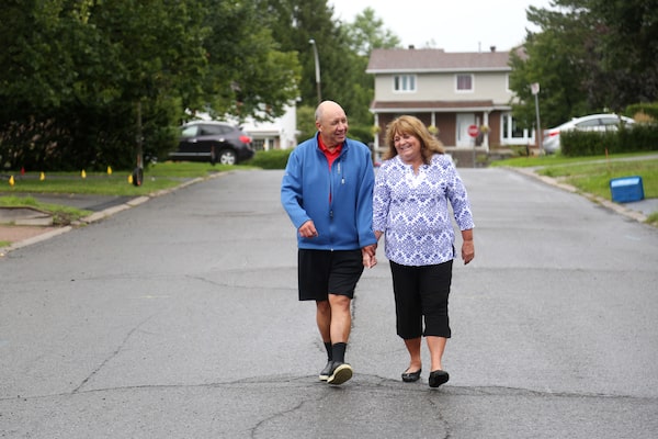 Carol and Mike Morrisette share a laugh during a walk.Dave Chan/The Globe and Mail