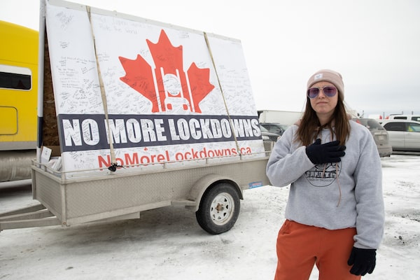 Some of the protesters who spent Sunday at the truck stop in Vankleek Hill moved on to a private property nearby. Most of the people parked in the dozens of big rigs, camper vans and other vehicles at that location refused to be interviewed. Those who did speak alluded to plans for next steps for the convoy, but refused to disclose them. The Globe was asked to leave the property about half an hour after arriving.